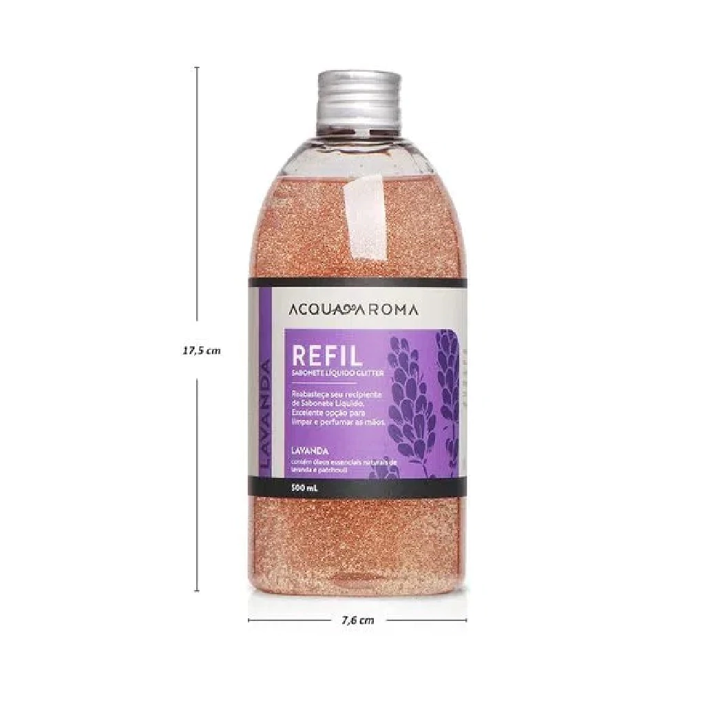 Refil de Sabonete Líquido Acqua Aroma. Com formulação em glitter, proporciona um delicioso sensorial de maciez e aroma na pele sem que o glitter fique nas mãos. Alta concentração de fragrância: sinta a explosão de aromas e sensações de bem estar no ambiente ao lavar as mãos.